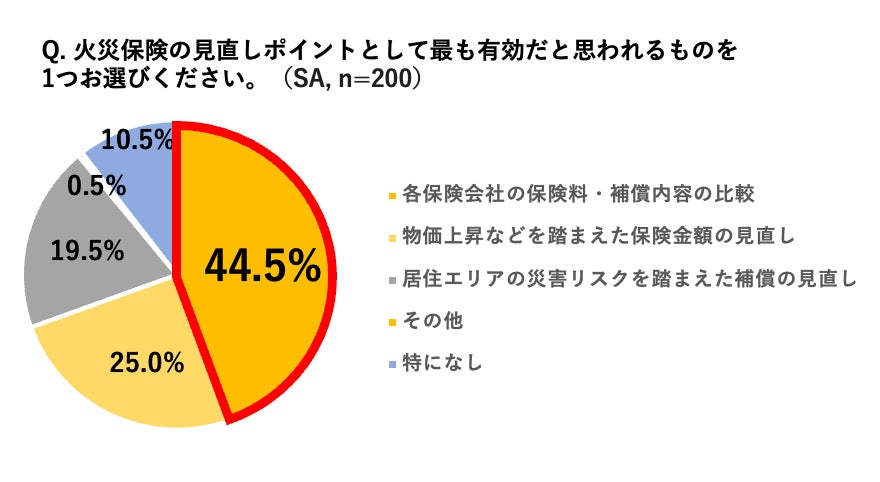 ⑤「火災保険」の見直しで最も有効なポイントは「各保険会社の保険料・補償内容の比較」