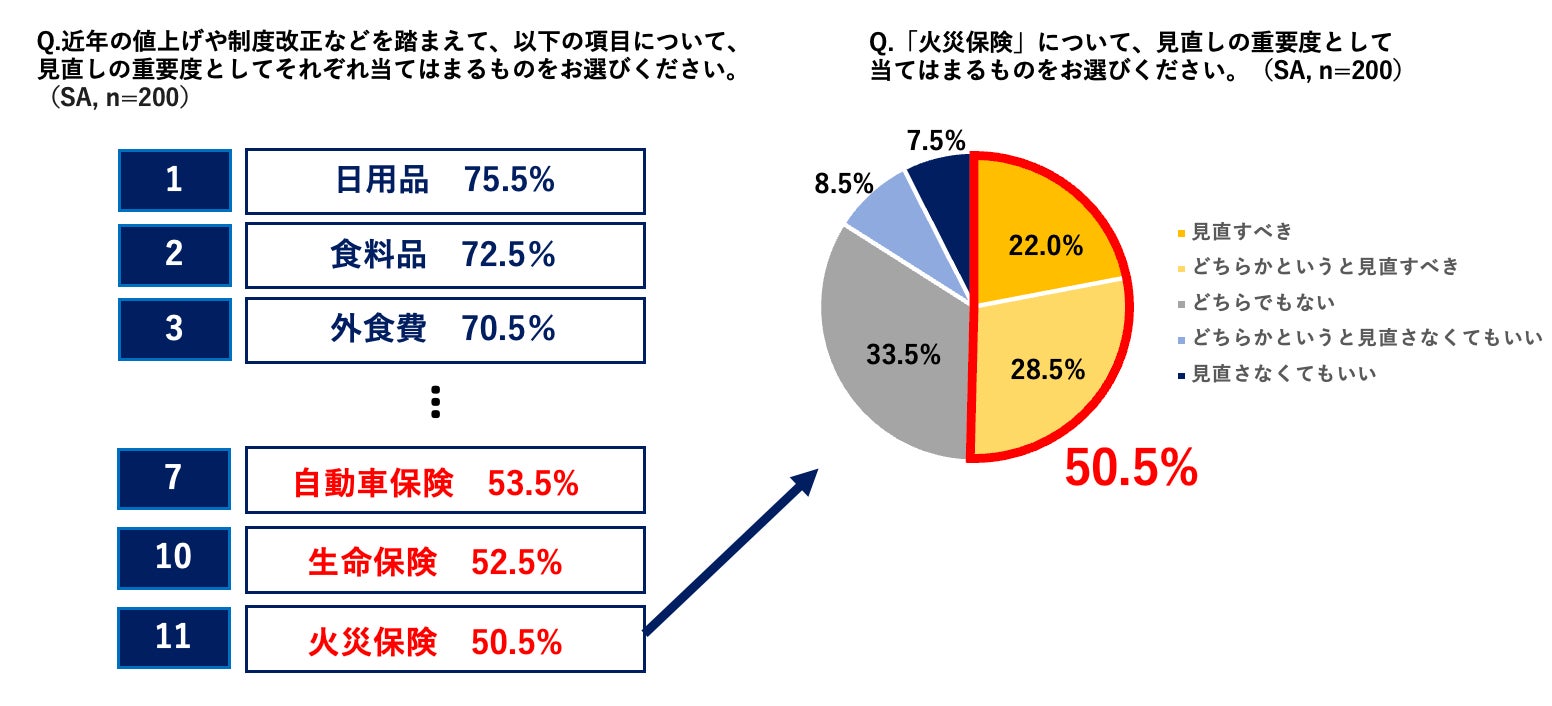 「自動車保険」「生命保険」「火災保険」も過半数が見直すべきと指摘
