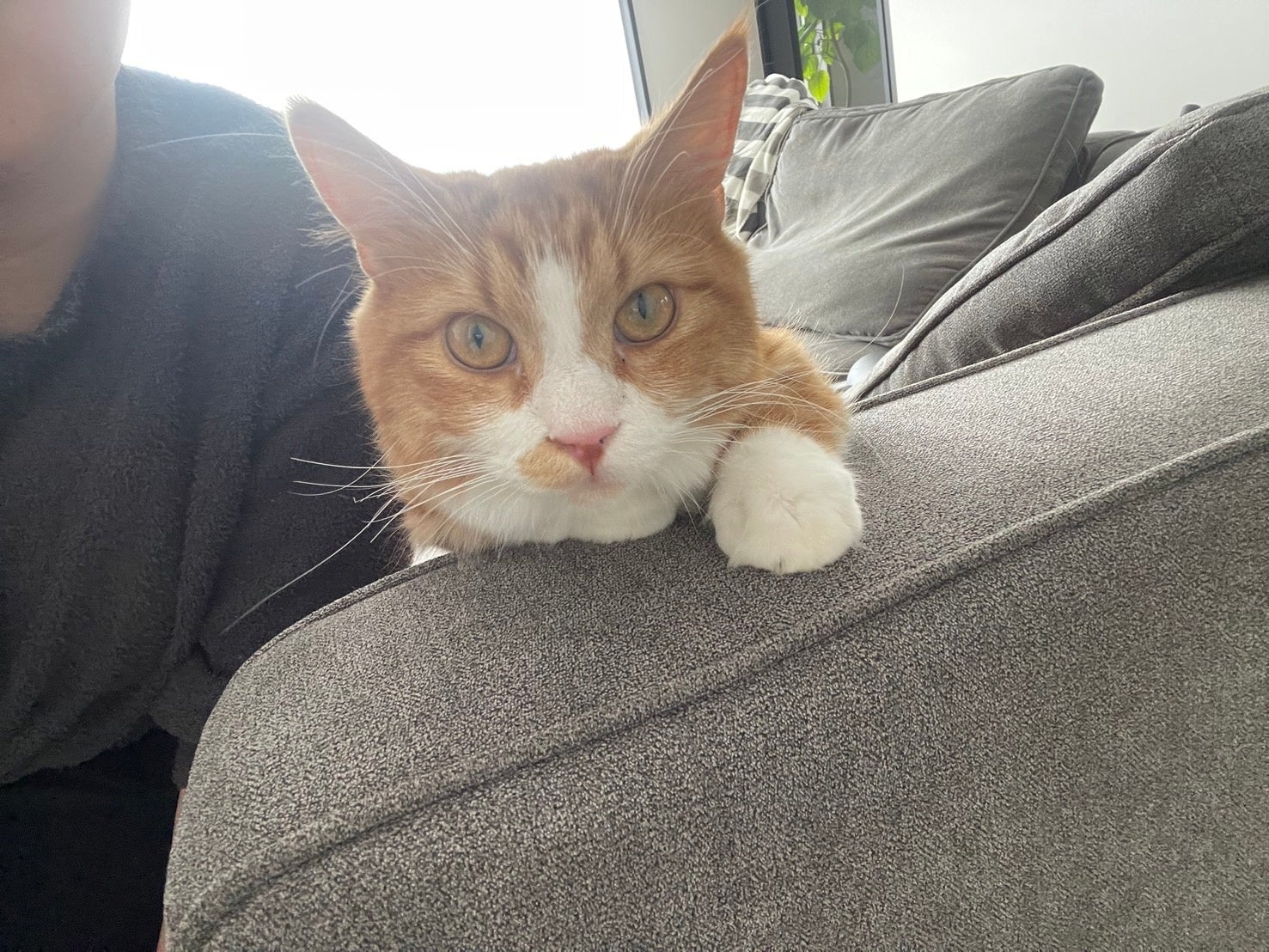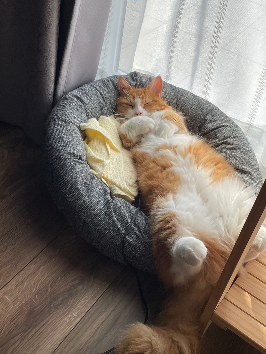 お迎えして2週間ほどはケージの中で安静に過ごしてもらいましたが、体力が付いてきたのか、今は家中を走り回っても呼吸を乱すことがない程に元気に過ごしています。いつも私たちの後に付いてきて、気が付くと側で寝ている、甘えん坊な子になりました。