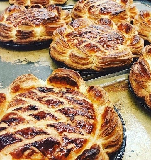 素材は毎日店主が市場に出向き、吟味して仕入れてくるもののみを使用しています。ずっしりと重量感を感じるほどたっぷりのアップルフィリングを包むパイは、水分が少ないバターを使い何層にも丁寧に重ねて焼き上げられたもの。酸味もなくまろやかな甘みが広がる、こだわりのりんごを使った、秋に食べたくなる秀逸の一品です。