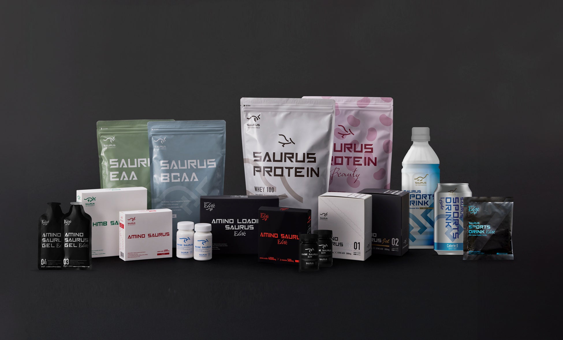 「SAURUSシリーズ」は、プロフェッショナルなアスリートはもちろん、現代を生きる全ての人々の健康をサポートし、スポーツを楽しみ、アミノ酸をより手軽に美味しく生活に取り入れていただけるよう改良を重ねているアミノ酸健康食品シリーズです。