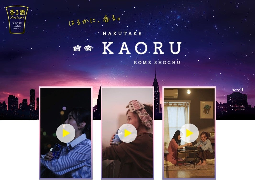 スマートフォン視聴を前提とした3本のショートムービーでは、熊本出身で東京に暮らす同級生「カオル」と「ハルカ」がルームシェアをしながら、忙しい日々の中で「白岳KAORU」とともに心をほどく瞬間を描いています。都会で働く20〜30代女性をメインターゲットに、香りで心を癒す“新しい焼酎の楽しみ方”をご提案します。