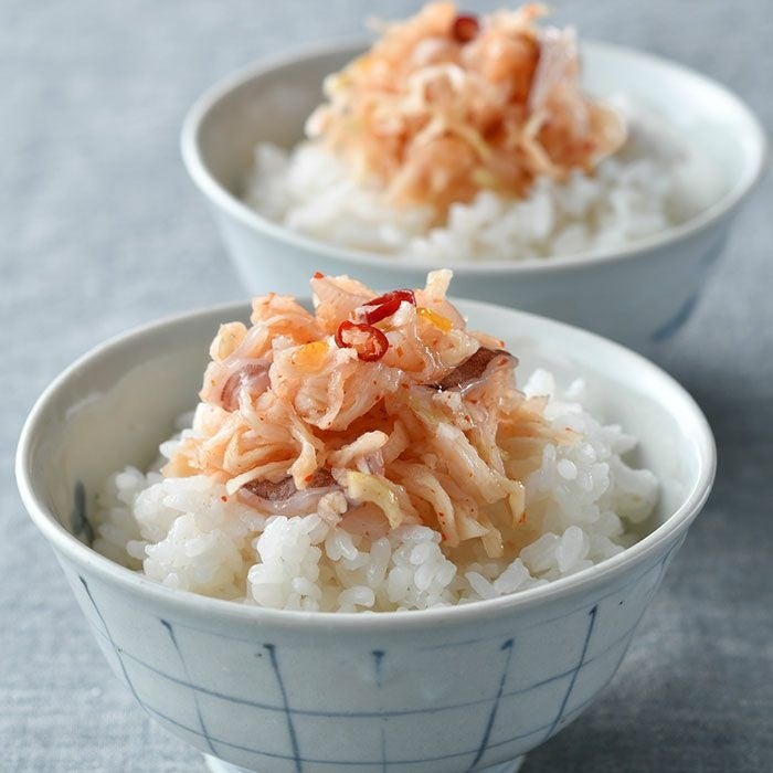 ねっとり、いやポリポリ? 独特の食感に新鮮な驚きを覚えるこちら。ワタを使わず仕上げたイカの塩辛と、切干し大根を和えた珍味だ。青首大根と唐辛子のW の辛みに柚子の香りを重ね、なんとも軽快な味わい。ピリ辛の漬物感覚で、ご飯も酒も進む。