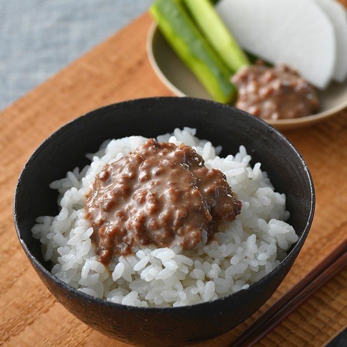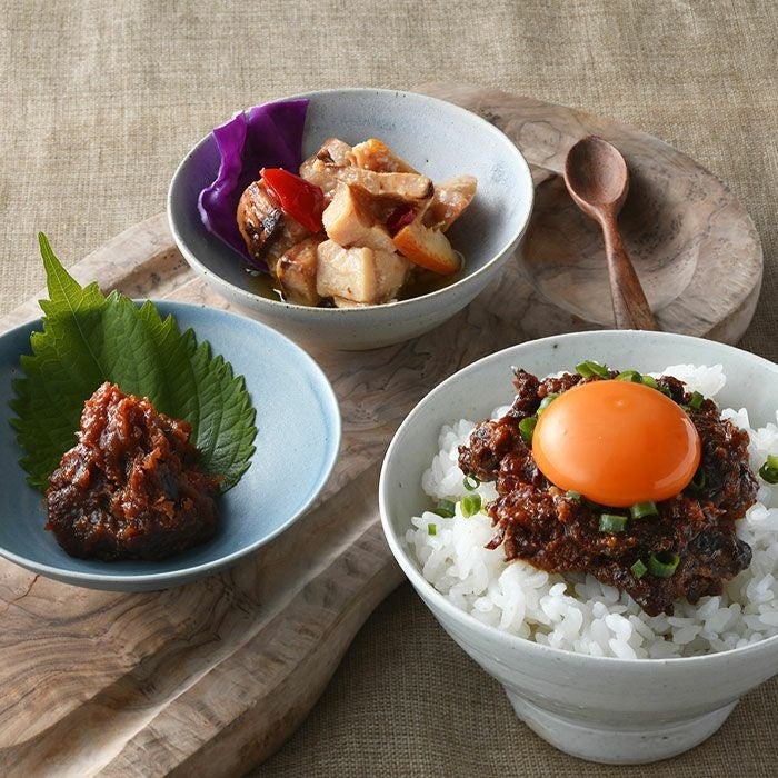 大阪の人気飲食店と作り上げる「旨い」を瓶詰めに。柔らかな国産牛すじ肉に甘辛味噌がコク深くなじむ「どて焼き」、勝浦漁港で水揚げされたマグロと野菜の旨みが詰まった「おかず味噌」。ご飯のお供2品に加え、爽やかな真鯛のオイル煮もセットに。