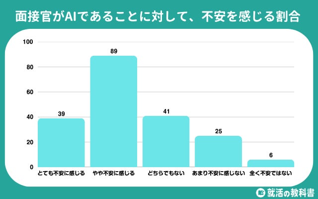 「とても不安に感じる」「やや不安に感じる」を合わせると128人で、6割以上の就活生がAI面接に対して不安を感じていることが分かりました。「全く不安ではない」と回答した人はわずか6人で、少数派であることが分かります。