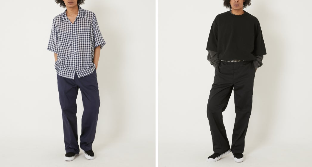 シルエット、ディテール、雰囲気。そのすべてのベースは、〈Dickies〉の定番モデル“874”。ブランドはもちろん、ワークパンツというジャンルにおいても原点にして頂点とも言える、最もアイコニックな存在です。