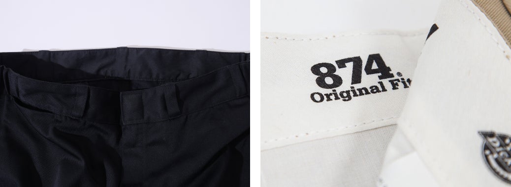さらにウエスト裏のスレキにもひと工夫。通常は“874”の文字が羅列されている箇所を、無地に変更し、よりシンプルな印象に整えました。