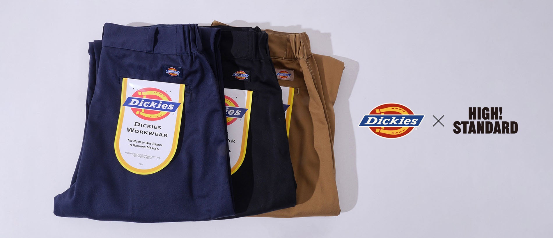 1920年代にワークウェアの生産を開始し、以降、様々なカルチャーとリンクしながらその地位を確立してきた〈Dickies〉。このたび、1982年にオープンし、アメリカのベーシックを追求したアイテムを展開している〈HIGH! STANDARD〉が、〈Dickies〉にワークパンツを別注しました。