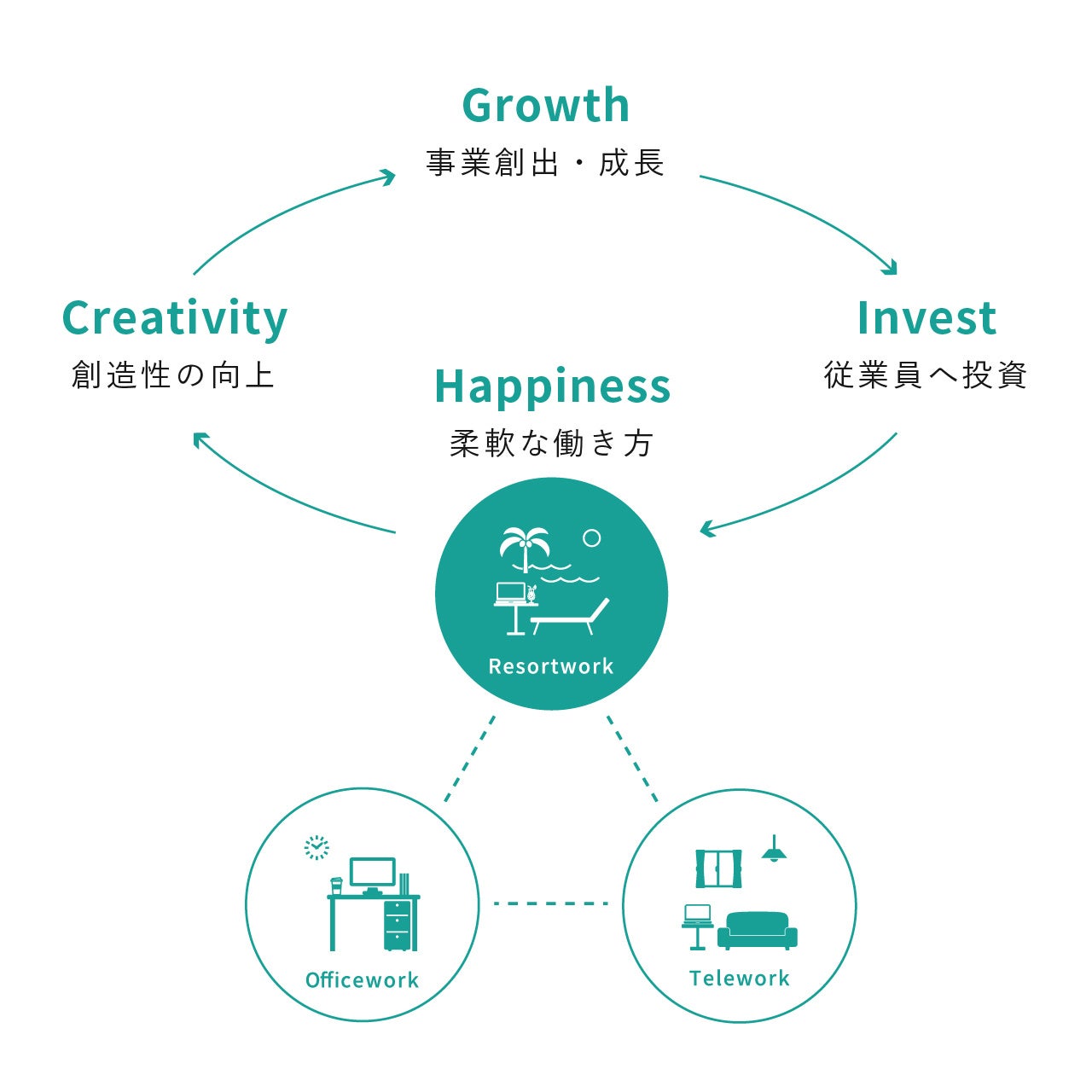 リゾートワークスでは、ワーケーションという新しいライフスタイルを促進することで、働く人々への心と身体のウェルネス体験の提供と同時に、コロナで大打撃を受けている観光業界や、閑散期のリゾート地の観光振興を目指しています。