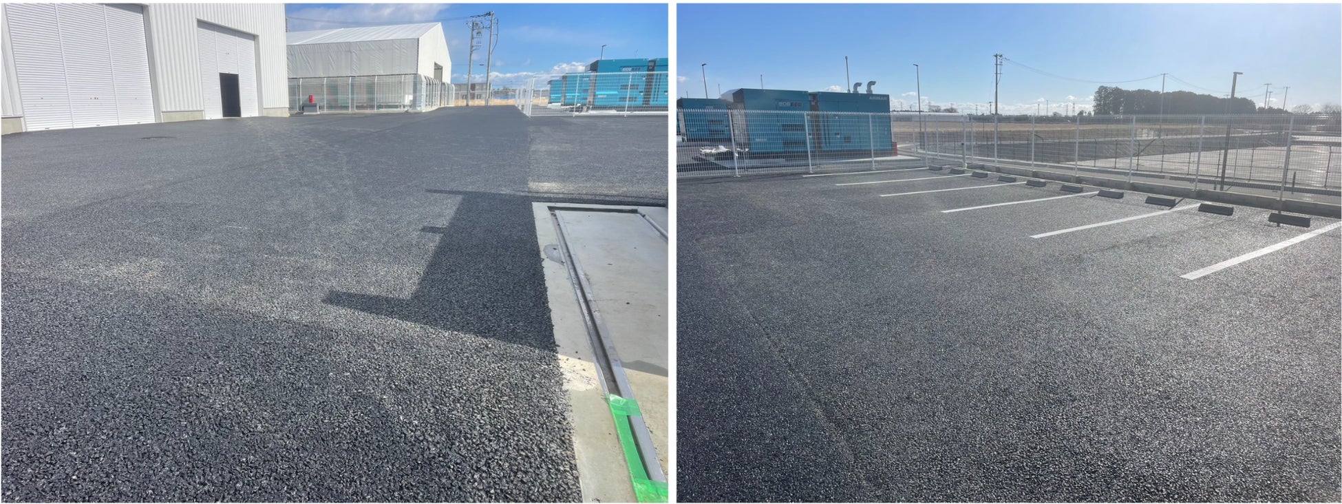 路盤工事、アスファルト舗装、ライン引き、車止め等の作業完了