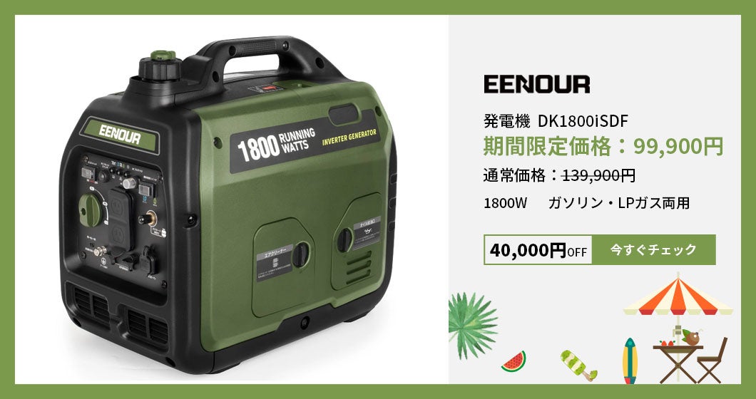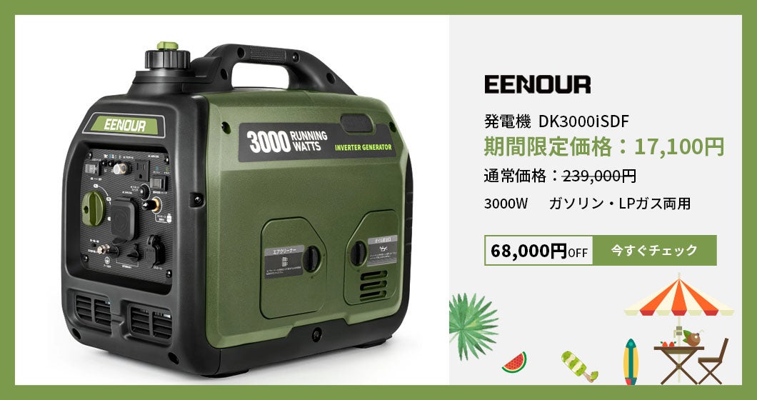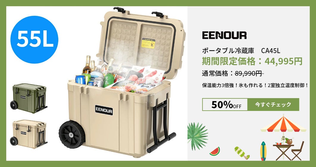 EENOUR(イーノウ)は、ポータブル電源と発電機を中心に、携帯性の高い冷温庫、ポータブル冷蔵庫、高圧洗浄機など電源を使った電気製品の開発に集中して、オフグリッド環境での充電やキャンプを快適にする、革新的なアウトドアギア電源を世に送り出しているブランドです。