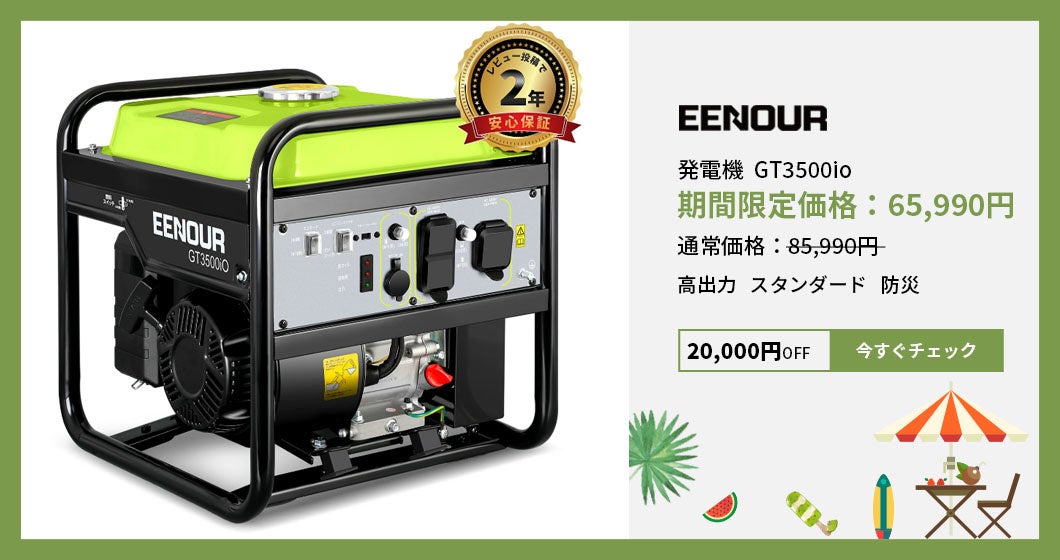 取扱い商品:ポータブル電源、ソーラーパネル、発電機、電動工具、照明器具、他