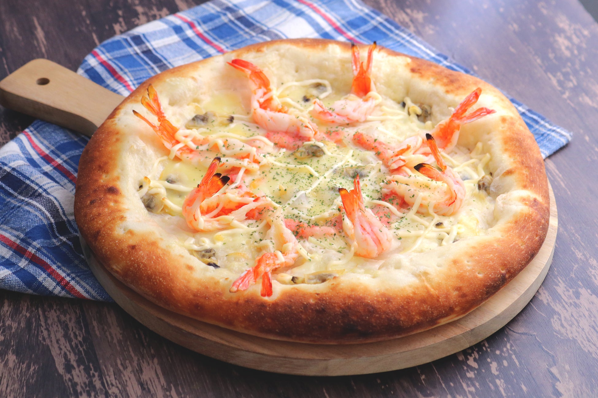踊っているかのようなエビと風味豊かな紅ズワイガニをトッピングした、リッチなグラタンピザです。