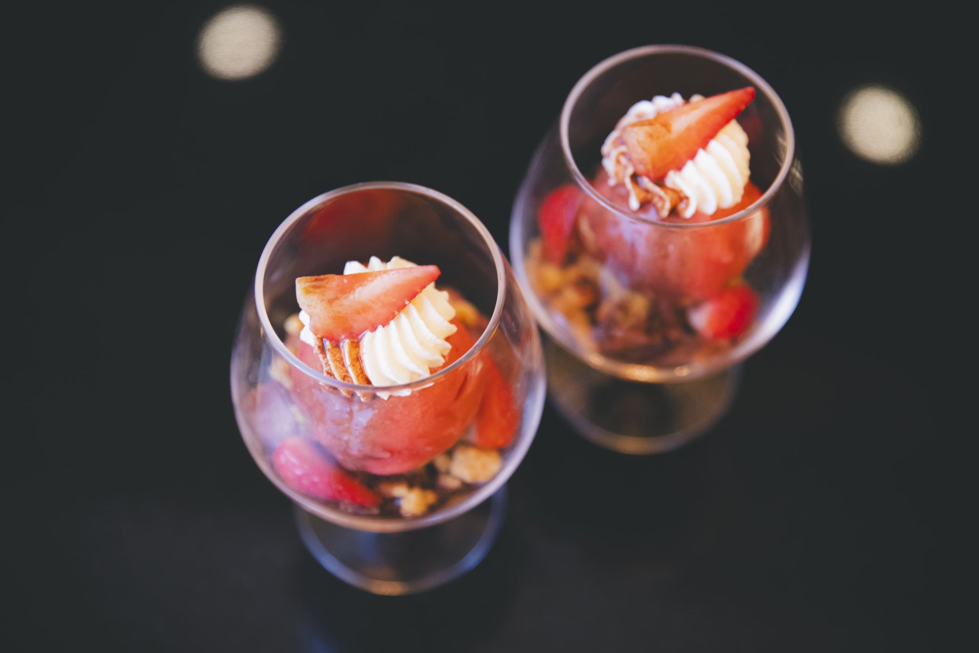 あまおうジュレ・イン・マスカルポーネムース/チョコのサントノレ/あまおうとチョコのミニパルフェ