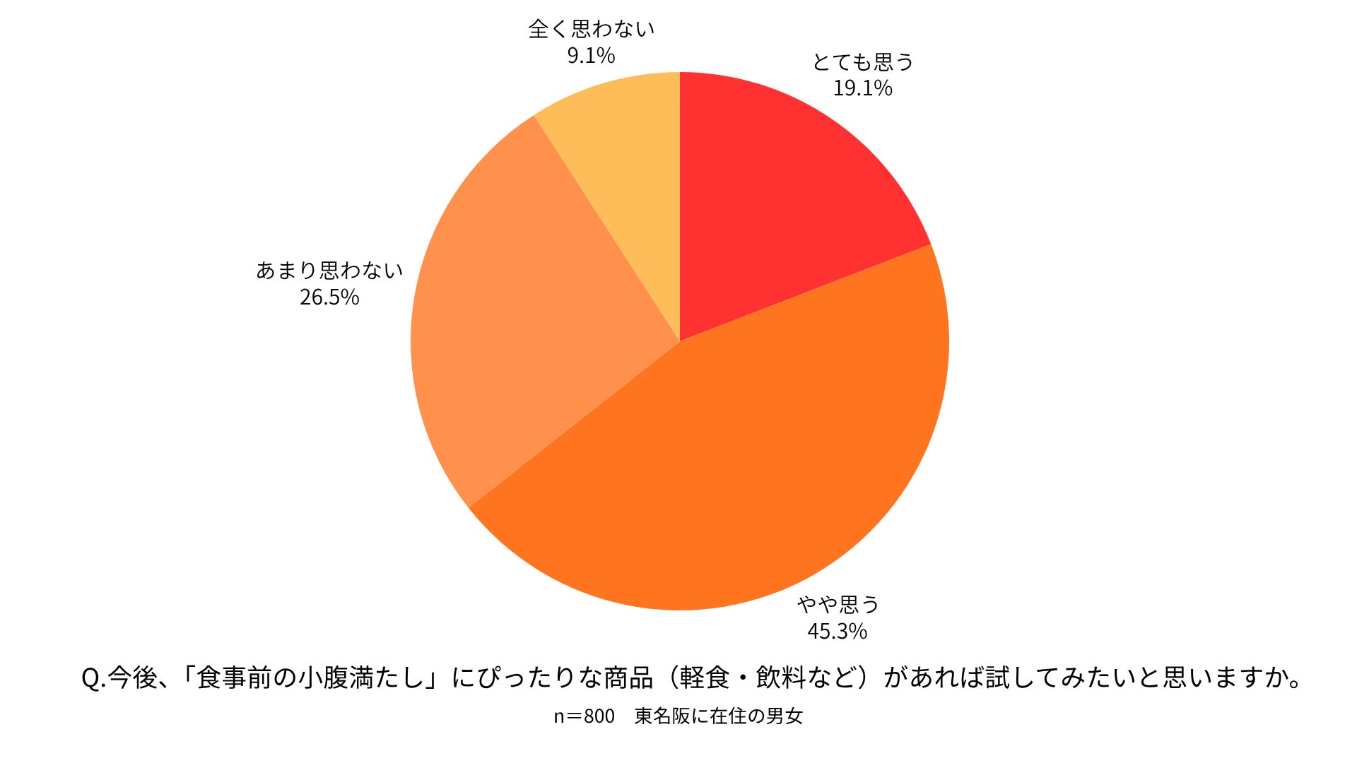 「食事前の小腹満たし」に適した商品があれば試したいと答えた人は、64.4%にのぼりました。