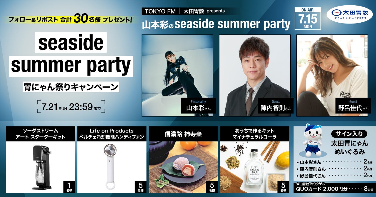本キャンペーンは同社が提供している7月15日(祝・月)15:00~OAの「TOKYO FM ホリデースペシャル『太田胃散 presents 山本彩の seaside summer party』」とのコラボ企画となっておりますので、ぜひ番組もお聴きください。