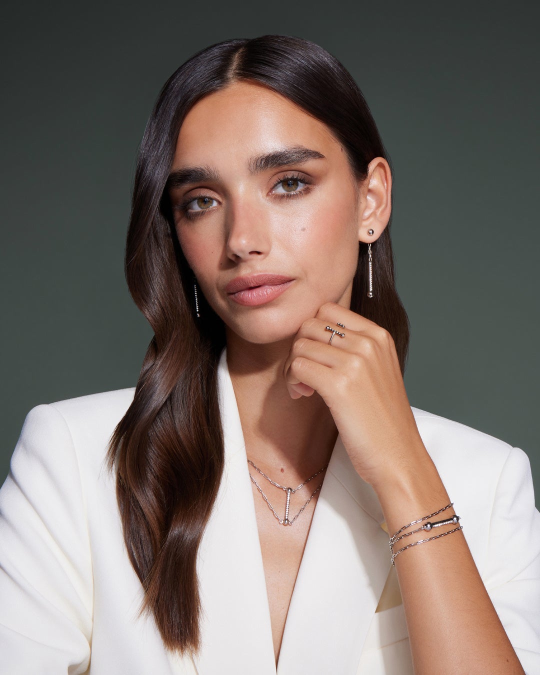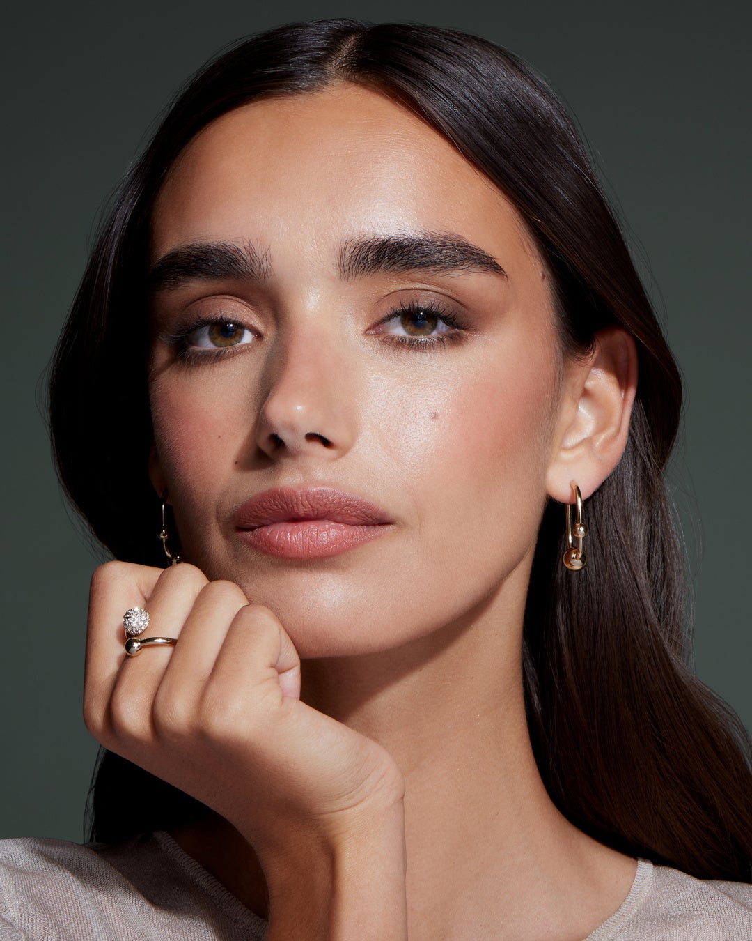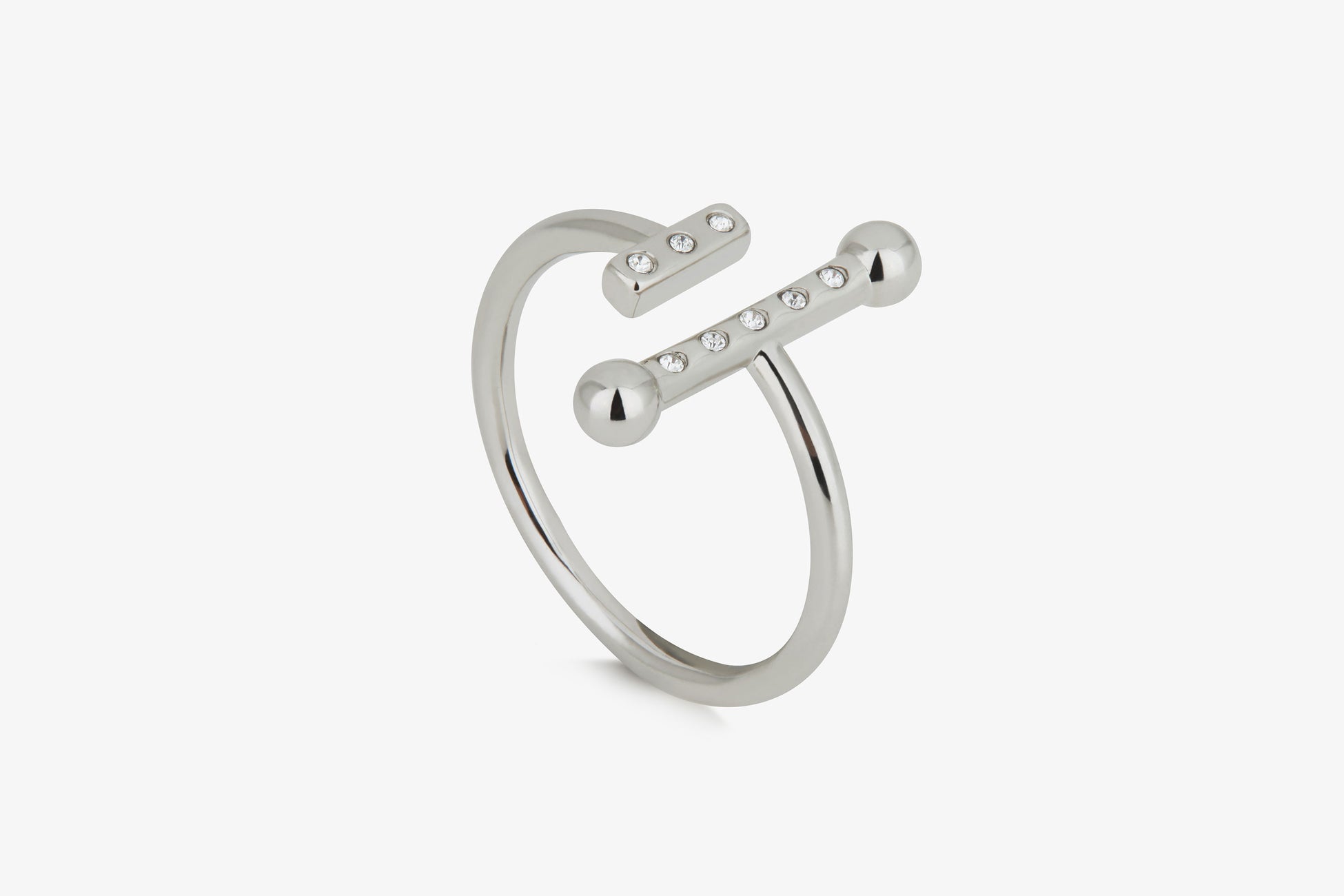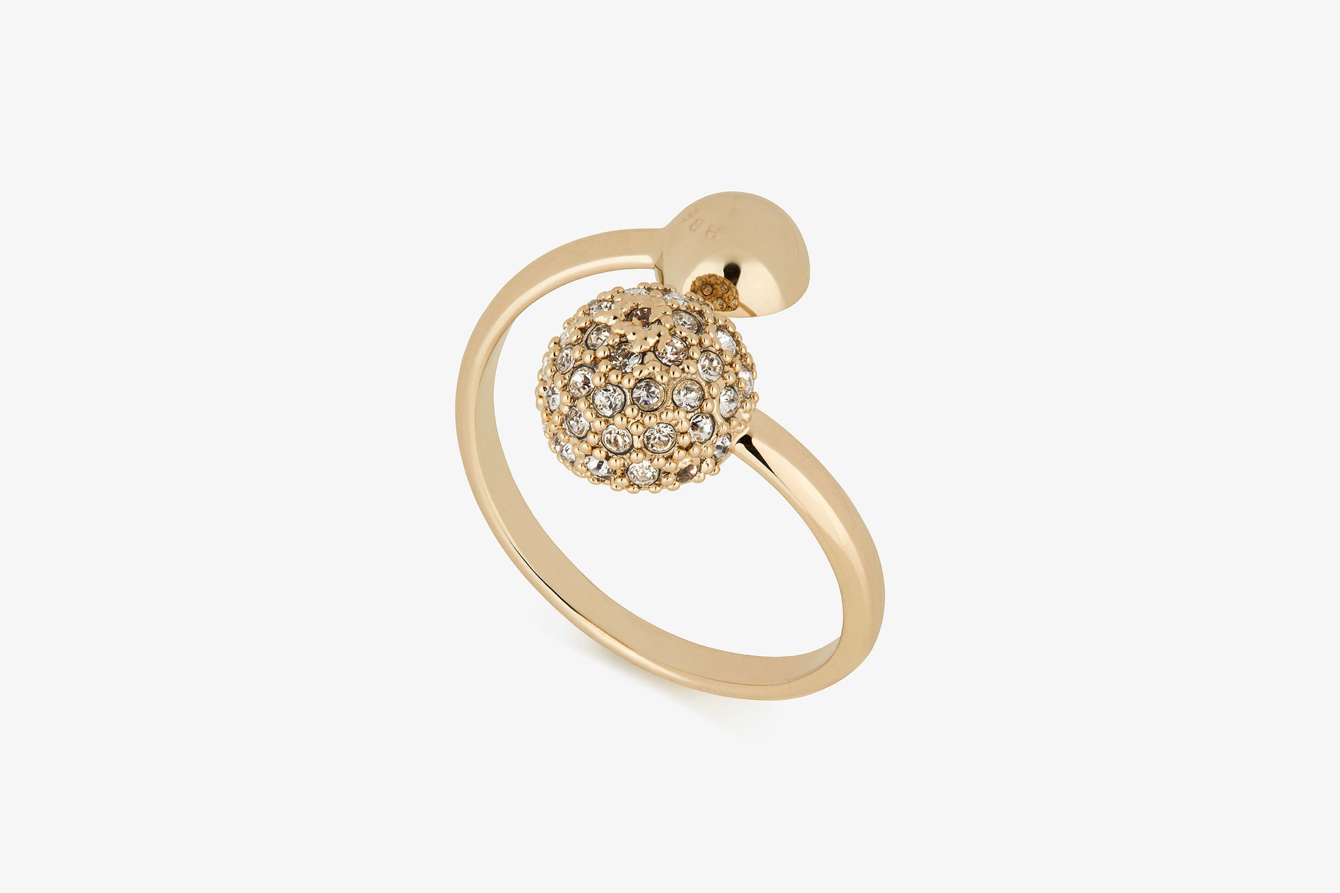クレセントリングは、ブランドの目印ストラスベリーバーをエレガントで現代的にアレンジしたリング。調節可能のクリスタルオーブが指の周りを繊細に引き立て、さまざまなサイズに合わせられるデザインです。