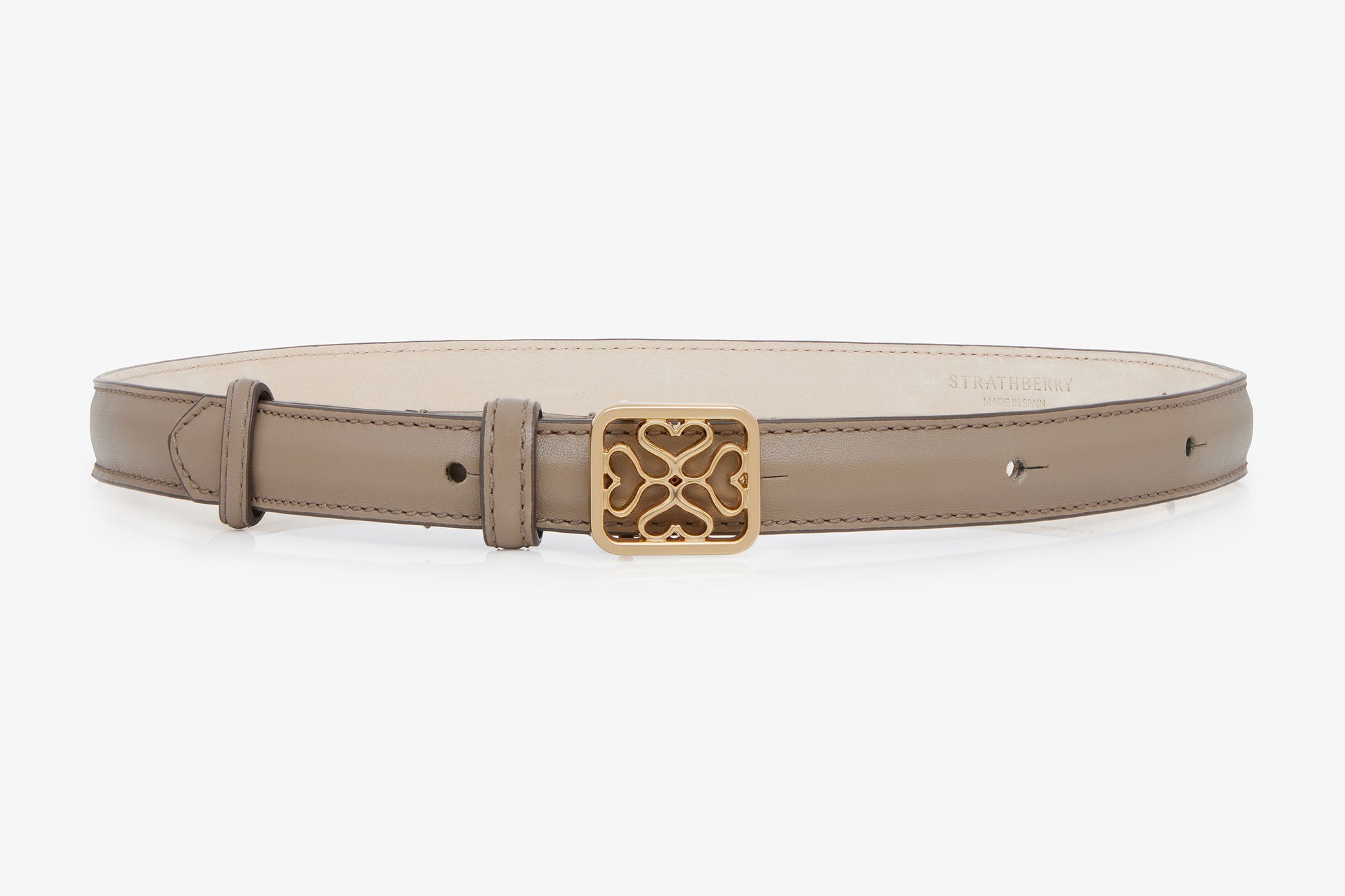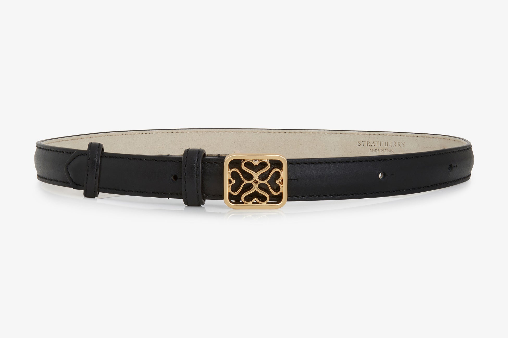 ストラスベリー・モノグラムバックルベルトは、職人技とデザインを融合させた今年の新アイテム。エレガントなハートの形をしたSモチーフのバックルが目印。ウエストやヒップに着用可能、スタイリングのバリエーションを広げてくれる便利なアイテムです。