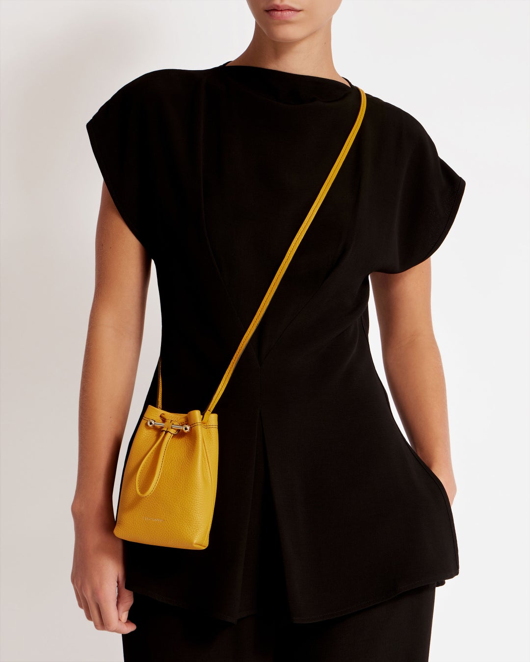 携帯電話やクレジットカード、鍵などお出かけの必需品がぴったり収まる巾着型のポーチは便利なアイテム。
