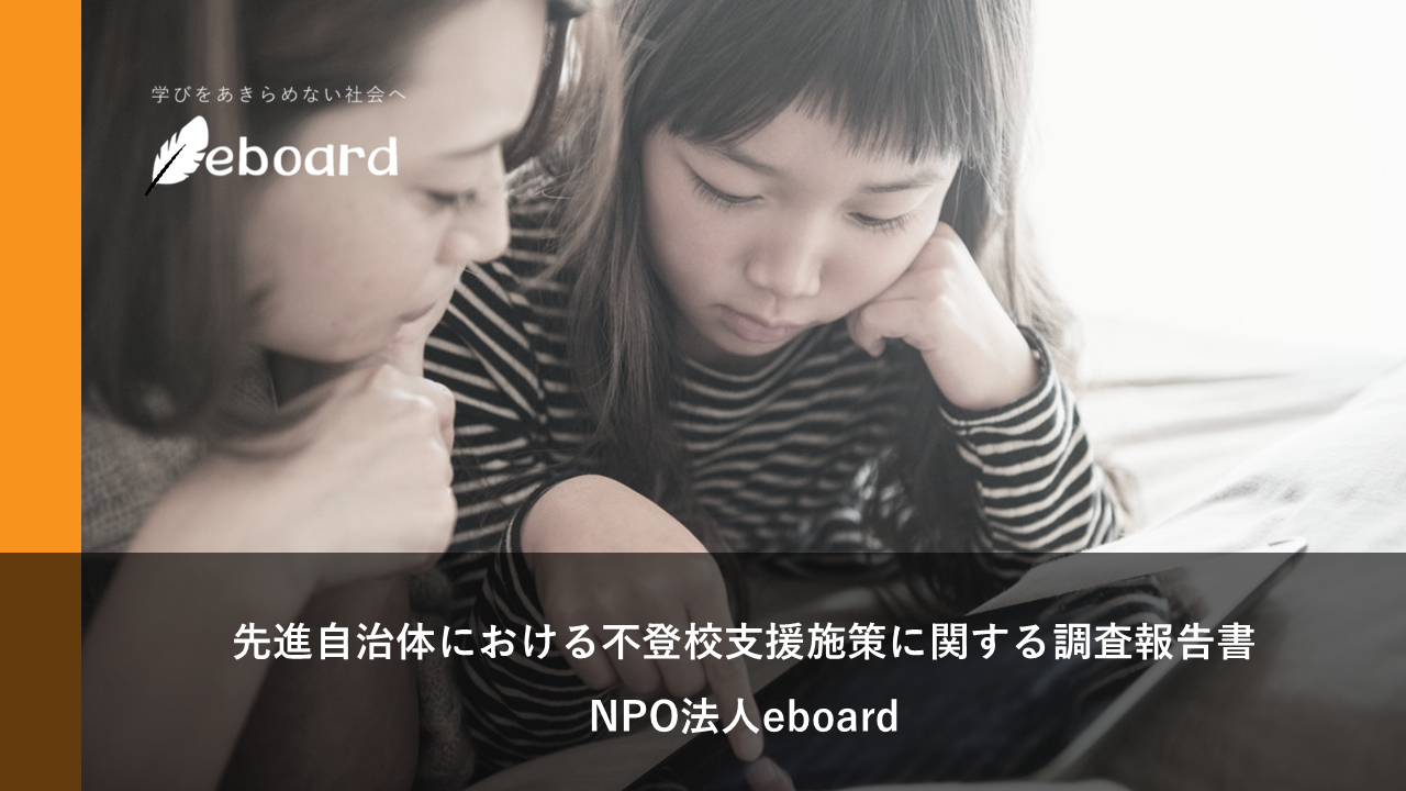 不登校の子どもなどにデジタル教材を提供するNPO法人eboard(イーボード、代表理事:中村孝一)は、不登校支援において先進的な取り組みを行う全国14自治体を対象に調査を実施し、行政・教育関係者向けの報告書を制作しました。本報告書は2026年3月17日(火)より当団体のホームページよりダウンロードできます。