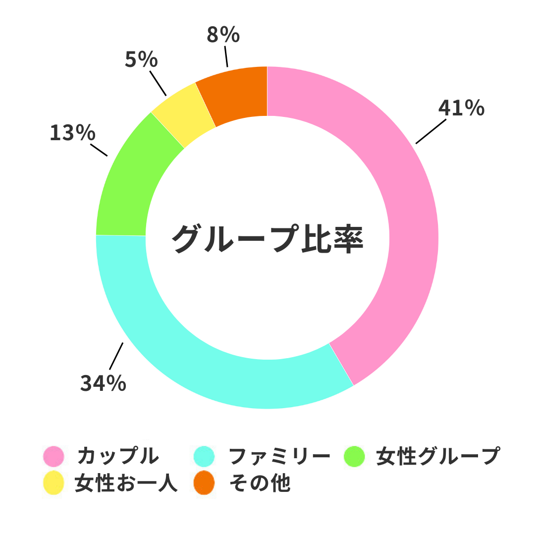 当施設での客層は、カップルや女性を中心とした若年層のお客様をはじめに、お子様連れのファミリーのお客様から特にご支持をいただきました。