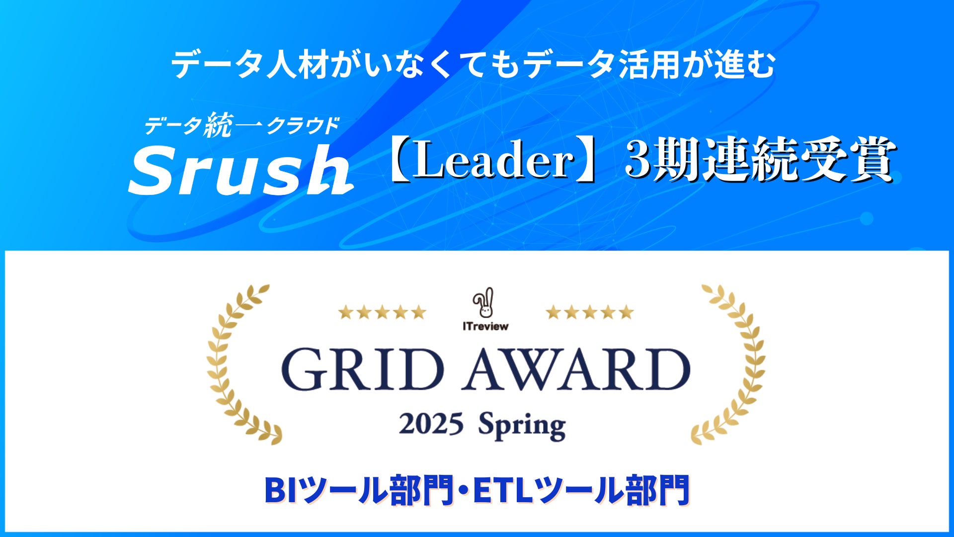 データ統一クラウド「Srush」、「ITreview Grid Award 2025 Spring」の2部門(BI ツール/ETLツール)において【Leader】を3期連続受賞