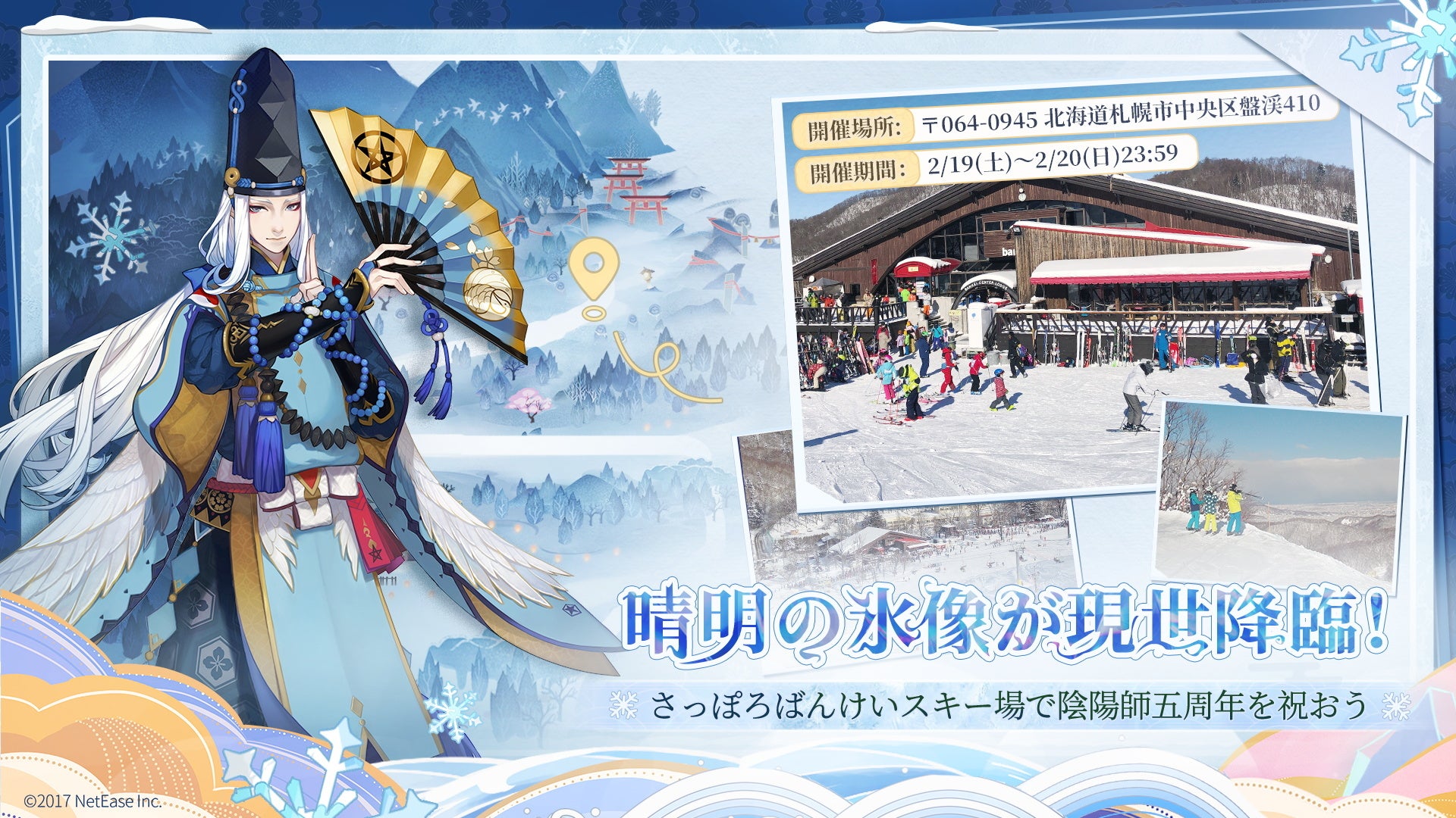 2月19日から2月20日にかけ、陰陽師運営チームは北海道札幌市のさっぽろばんけいスキー場にて「晴明の氷像が現世降臨!」特別企画を実施します。企画期間中、晴明の姿を再現した、迫力のある氷像が展示することとなります!
