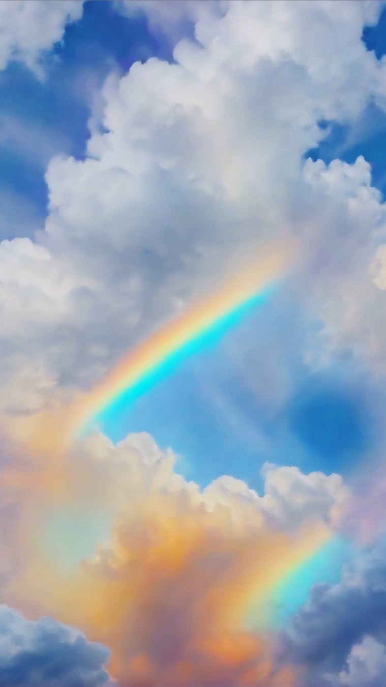 「彩雲」、つまり太陽近くの雲が虹のように七色を帯びて見える現象を、AIによってシミュレートした映像作品です。