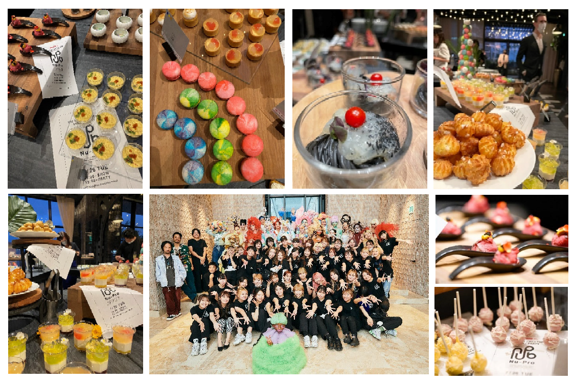バンタンデザイン研究所のメンバーが手掛けたヘアメイクショーでは、監修講師にヘアスタイリストのKUNIO KOHZAKI氏、ATSUSHI TAKITA氏、メイクアップアーティストのYUKA HIRAC氏とCHACHA氏を迎え、ヘアメイク業界のトップクリエイターやインフルエンサー約50名が来場。メンバーは「PEACE」を“多様性の時代”や“虹”と捉え、性別や国籍を超えてイメージした作品20体を発表しました。イベントを手掛けたメンバーとショーの来場客が交流する場として開催したアフターパーティーでは、キンプトン新宿東京 エグゼクティブシェフ・トーマスの監修のもと、レコールバンタンのメンバーがフード、スイーツとドリンクを考案。ショーと同様に「PEACE」をテーマとし、世界の連帯と平和の象徴をイメージした5色のフードや虹色のスイーツなどを提供しました。