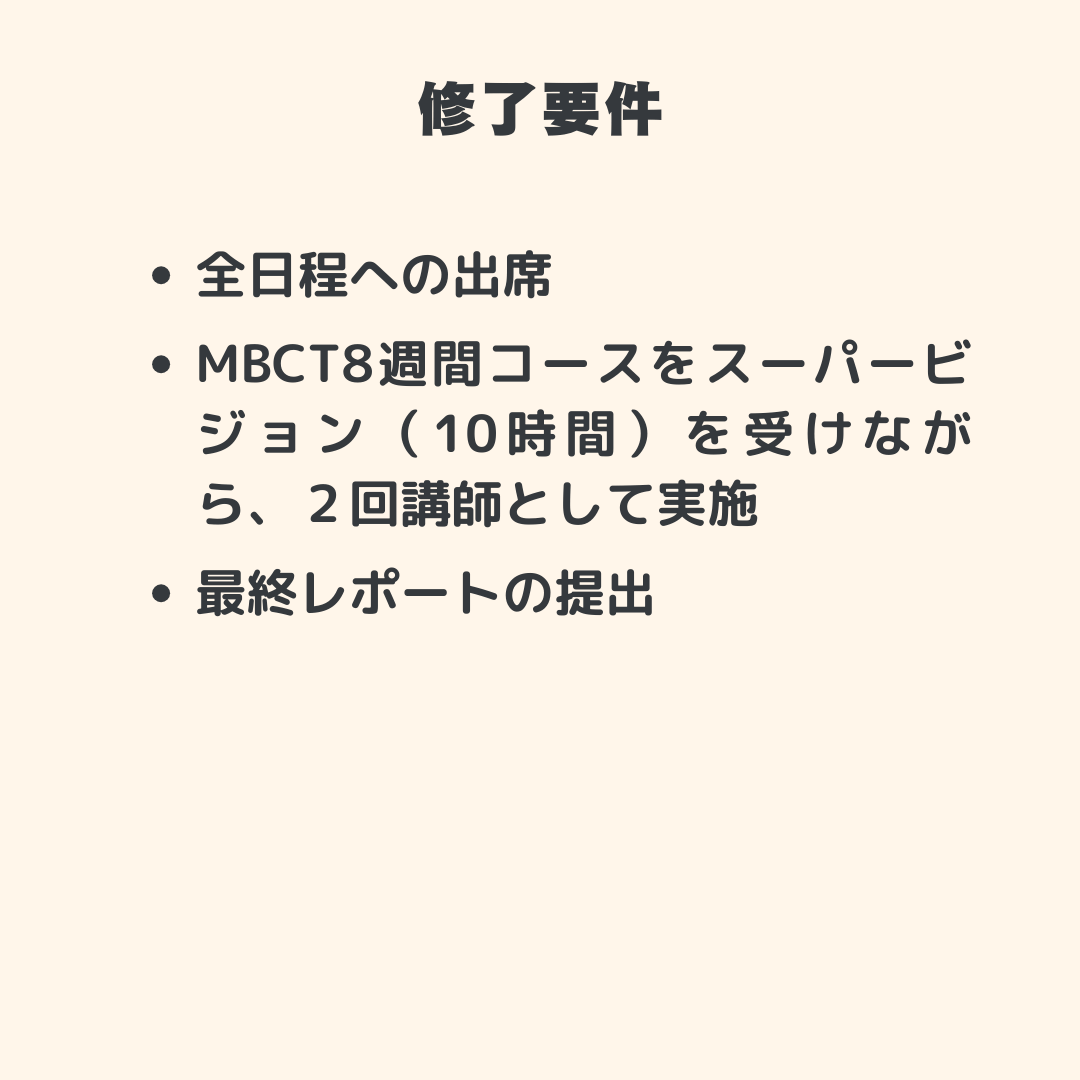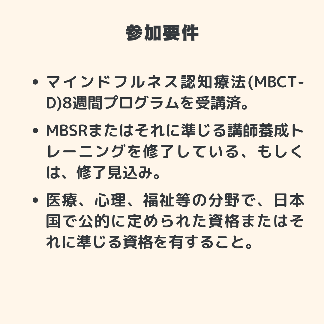 •MBCT講師トレーニング受講済みで学び直しをしたい方