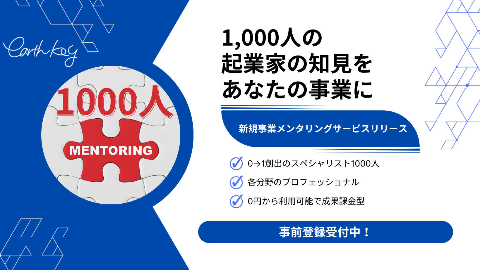 「スタートアップ経営者1000人メンターバンク」アースキーの新たな新規事業支援プログラム2月14日リリース