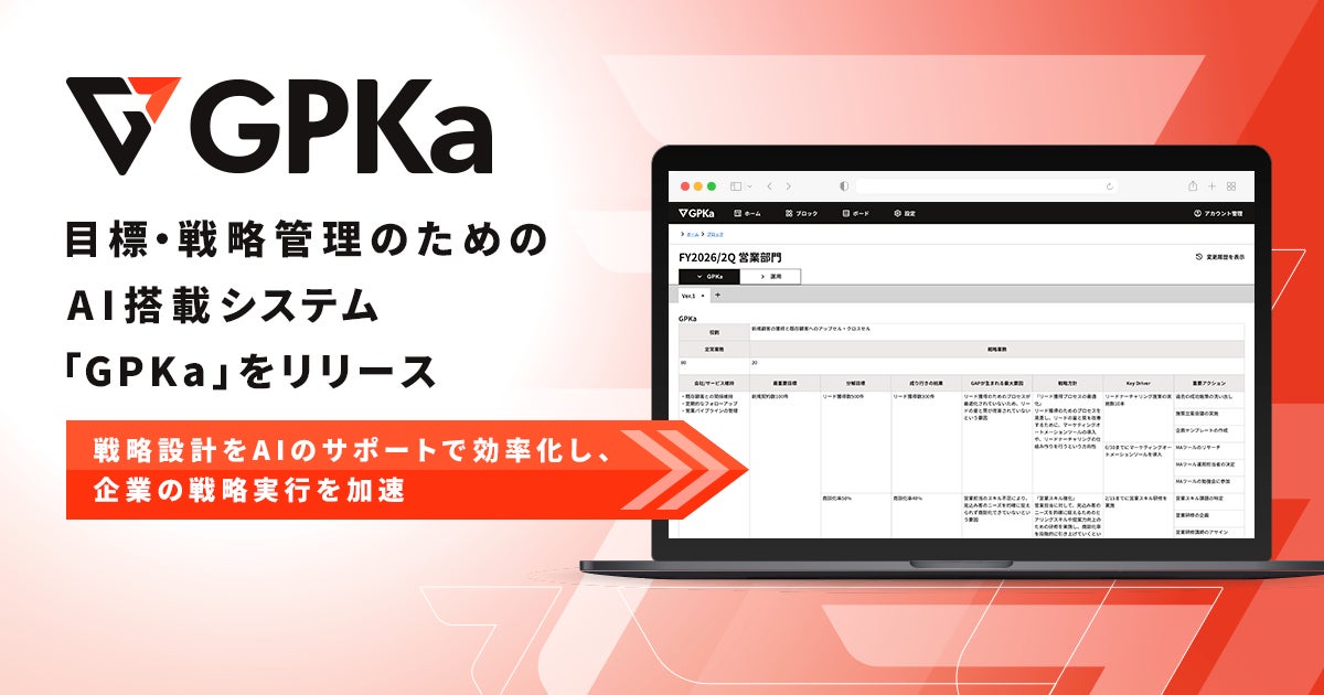 マネージャーイネーブルメントサービスを提供する株式会社EVeM(本社:東京都新宿区 代表:長村禎庸)は、マネージャーの目標・戦略管理のためのAI搭載マネジメントSaaS「GPKa」及びコンサルティングサービスをリリースしました。マネージャーが描く目標や戦略設計をAIによって効率化させると共に、コンサルティング支援によって企業の成長を後押しして参ります。