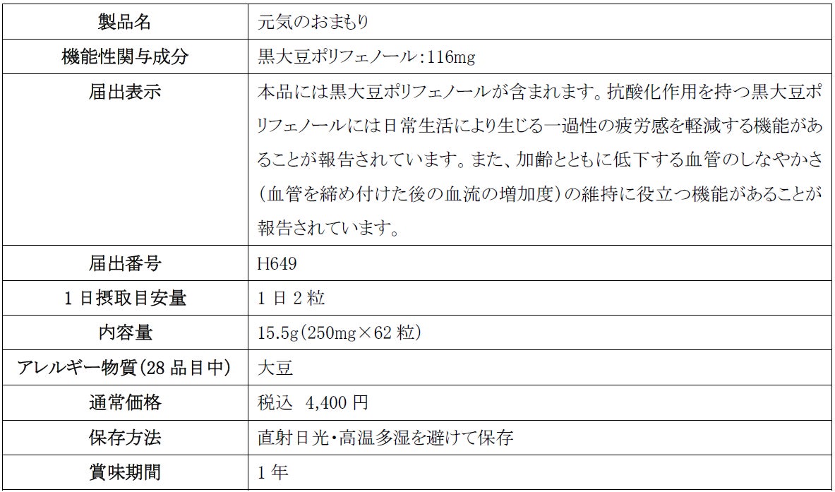 「日常生活により生じる一過性の疲労感を軽減する」「加齢とともに低下する血管のしなやかさ※の維持に役立つ」2つの機能をもつ機能性表示食品「元気のおまもり®」新発売
