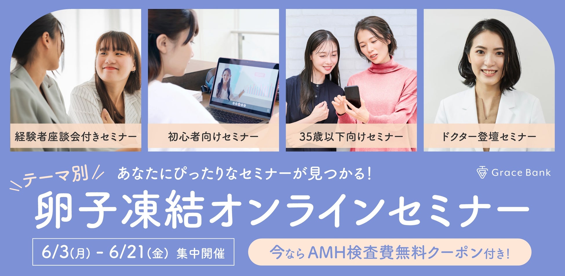 【Grace Bank】AMH検査無料クーポン付き 卵子凍結のオンラインセミナーを2週間集中開催 (2024年6月3日~21日)