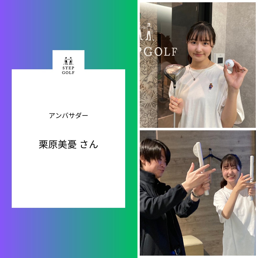 はじめまして!この度ステップゴルフさんのアンバサダーに就任致しました、大学1年生の栗原美憂と申します。ゴルフは未経験ですが、ずっとやってみたいと思っていたのでとっても嬉しいです!たくさんの方にステップゴルフの魅力を伝えられるよう、精一杯頑張りますので、これから約半年間よろしくお願いします!