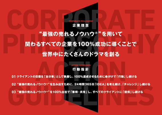 これからも、企業理念『“最強の売れるノウハウ®”を用いて関わるすべての企業を100%成功に導くことで世界中にたくさんのドラマを創る』の実現に向けて、全社一丸となって大成長してまいります。