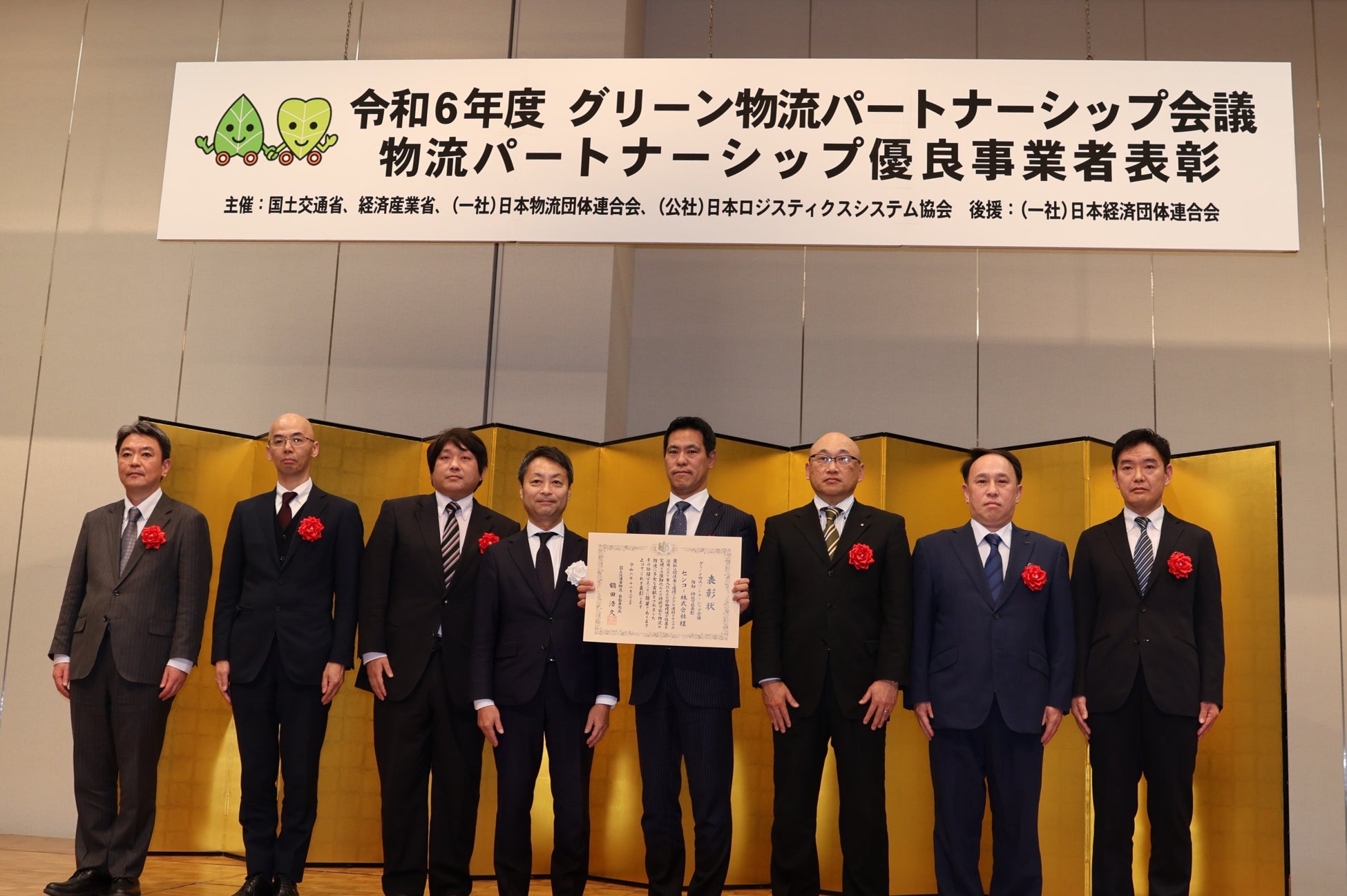 積水樹脂株式会社(本社:大阪市北区、代表取締役社長 兼 CEO 馬場浩志、以下「当社」)は、センコー株式会社(本社:大阪市北区、社長:杉本健司、以下「センコー」)を代表者とするパートナー企業6社(※)のうちの1社として、国土交通省主催の「令和6年度 グリーン物流パートナーシップ会議 物流パートナーシップ優良事業者表彰」において、部門賞「強靱・持続可能表彰」を受賞し、12月23日に表彰式が行われました。
