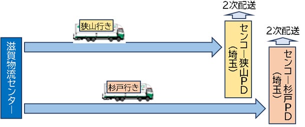 当社は2023年10月よりセンコーのダブル連結トラックを利用した輸送を開始し、2024 年問題をはじめとする物流に関する課題解決やCO₂ 排出量削減・省人化に取り組んでおります。