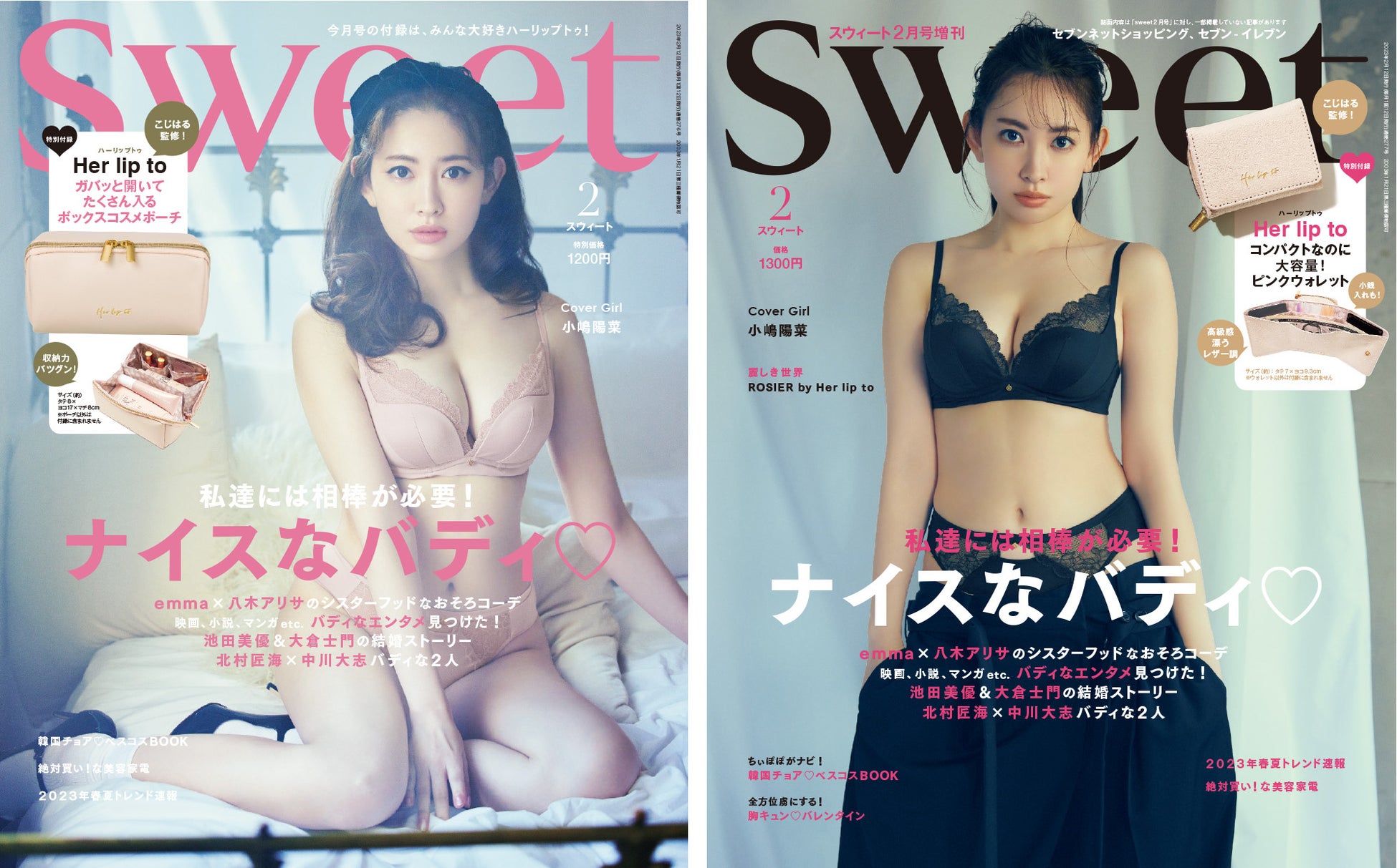 株式会社宝島社が発行する『sweet』2 月号(2023年1月12日発売)の表紙に「ROSIER by Her lip to」のプロデューサー小嶋陽菜が当ブランドのランジェリー姿で登場します。