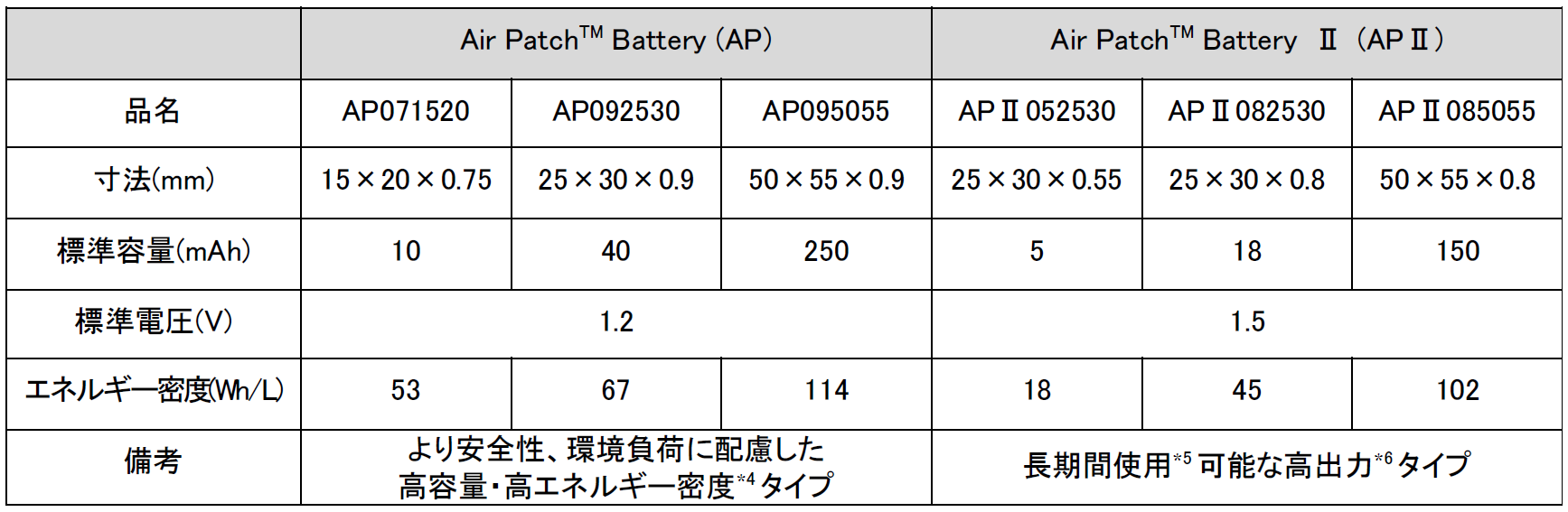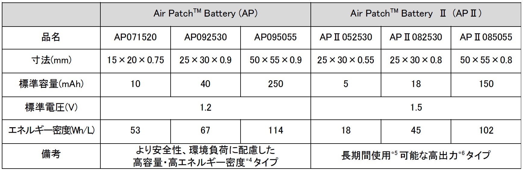 *4 2018年11月8日に発表した:「医療・ヘルスケアパッチ向け電池「Air Patch(TM) Battery」の開発」のプレスリリース