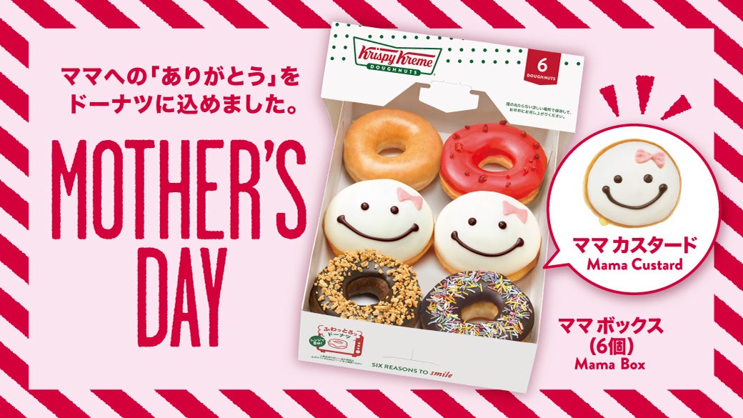 クリスピー・クリーム・ドーナツ・ジャパン株式会社(本社:東京都渋谷区、代表取締役社長:若月貴子、以下:KKDJ)は、5月8日(日)に迎える母の日に向けて、『ママ カスタード』を2022年4月27日(水)~5月8日(日)の期間限定で販売します。また、『ママ カスタード』と人気の定番商品がセットになったお得な『ママ ボックス』も販売します。※催事及びKKD店舗以外の小売店を除く