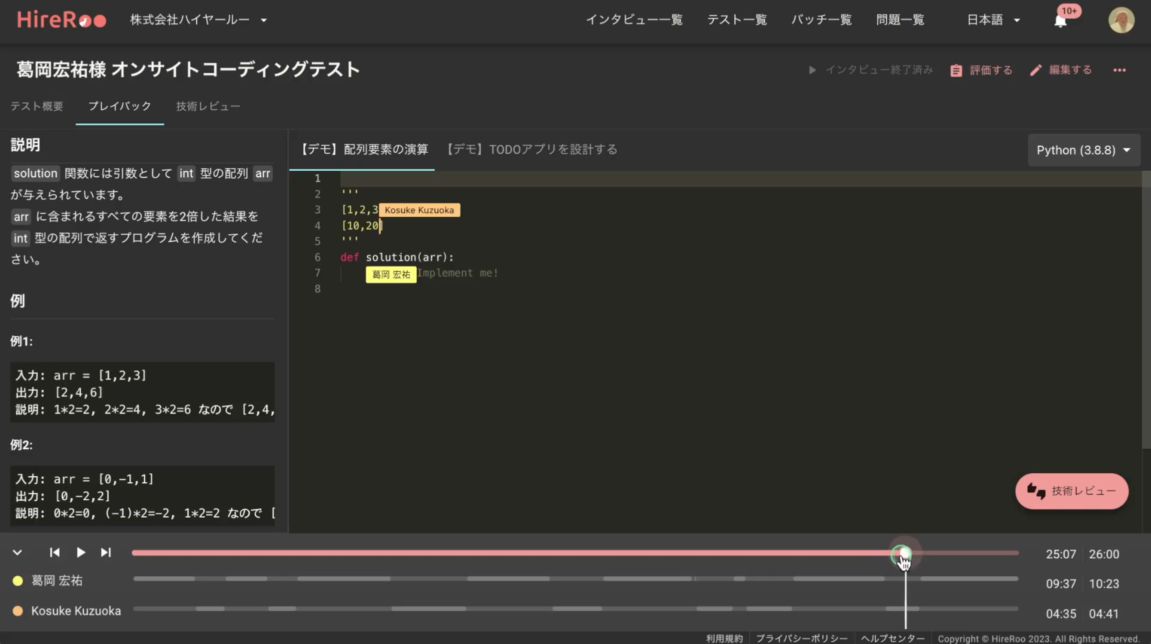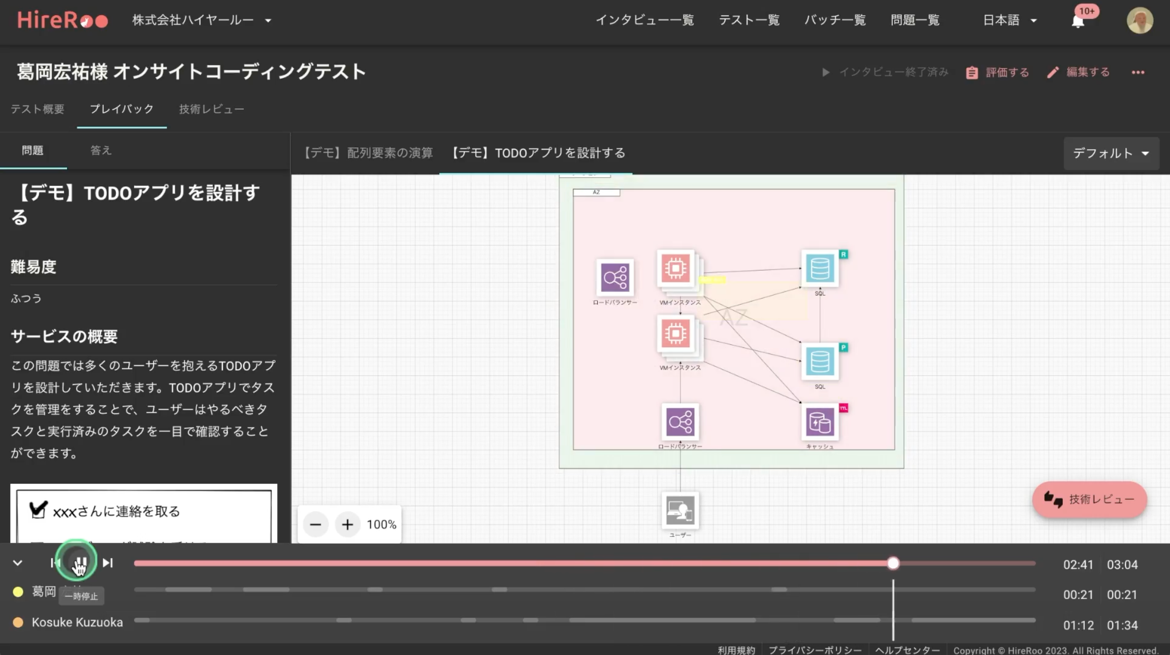 ちなみに、システム設計問題のライブコーディングをプレイバック動画で再生できる機能は世界の類似コーディング試験サービスの中でもHireRoo独自のものだと言えます。