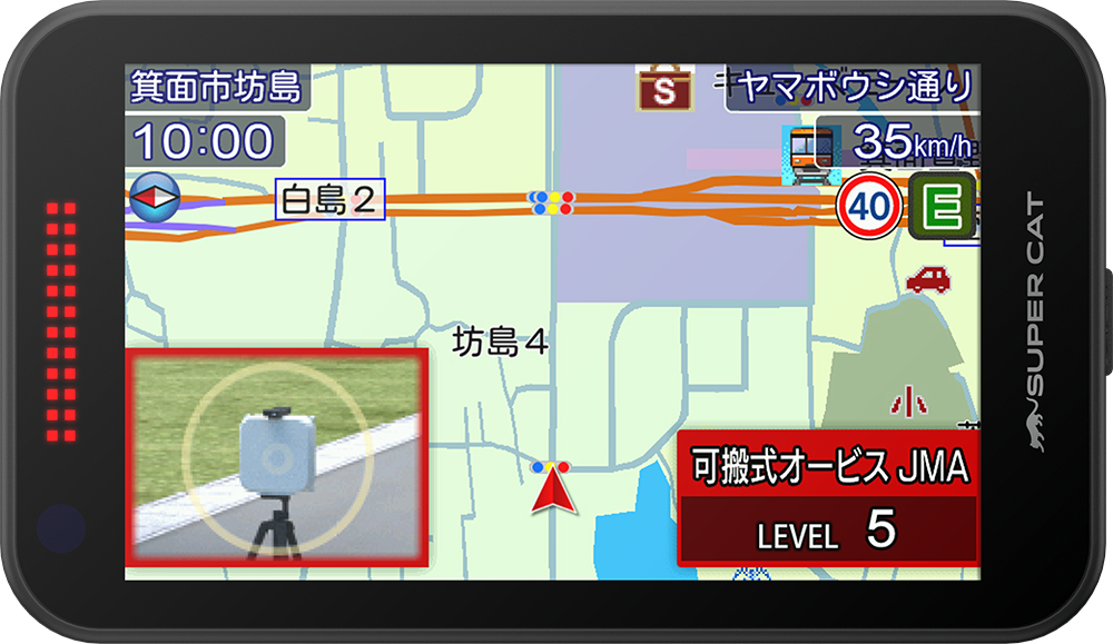 LSM/MSSSはもちろん、最新のレーダー取締機JMA-600(NTG-962)、520、401の識別と警報を実現。現在国内で稼働しているすべての移動式取締機に完全対応しています。