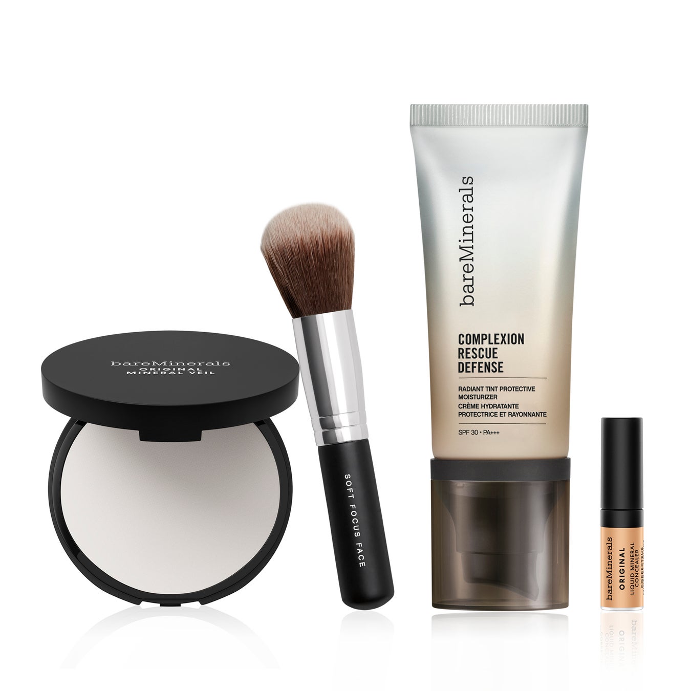 ベストセラーの多機能ベースとセッティング パウダーに気になる部分をカモフラージュするミネラル コンシーラーとフェイス ブラシをセットにした数量限定リニューアル オープン キット