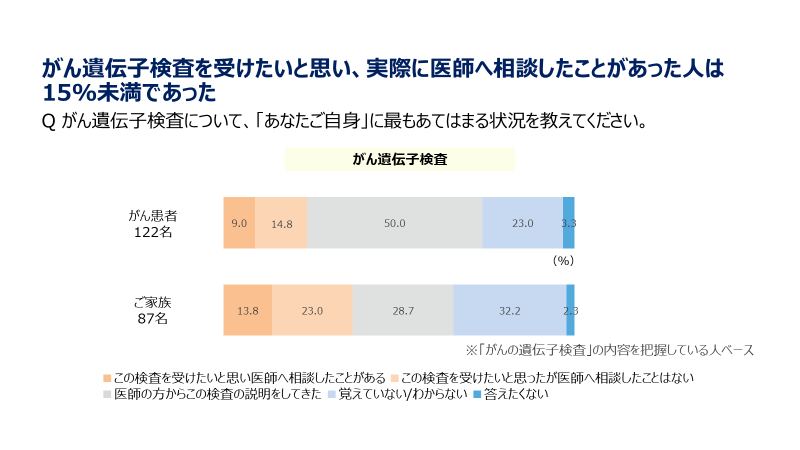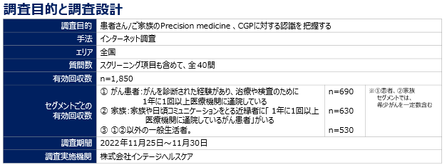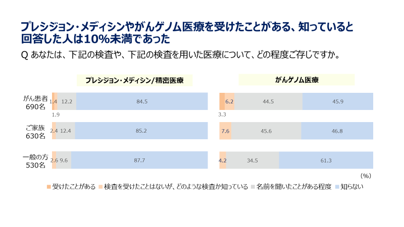 ※2022年11月25日~30日に患者さん/ご家族のPrecision medicine、CGPに対する認識を把握することを目的として、バイエル薬品株式会社が実施したインターネット調査(実施機関は株式会社インテージヘルスケア)