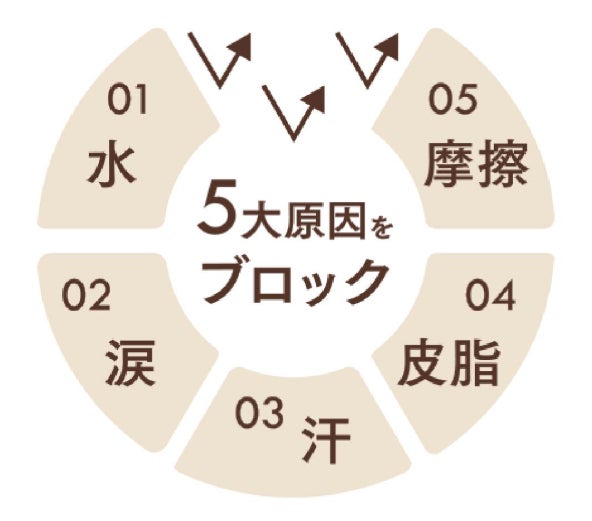 アイライン崩れを引き起こす5つの原因「水、涙、汗、皮脂、摩擦」から守る独自処方の