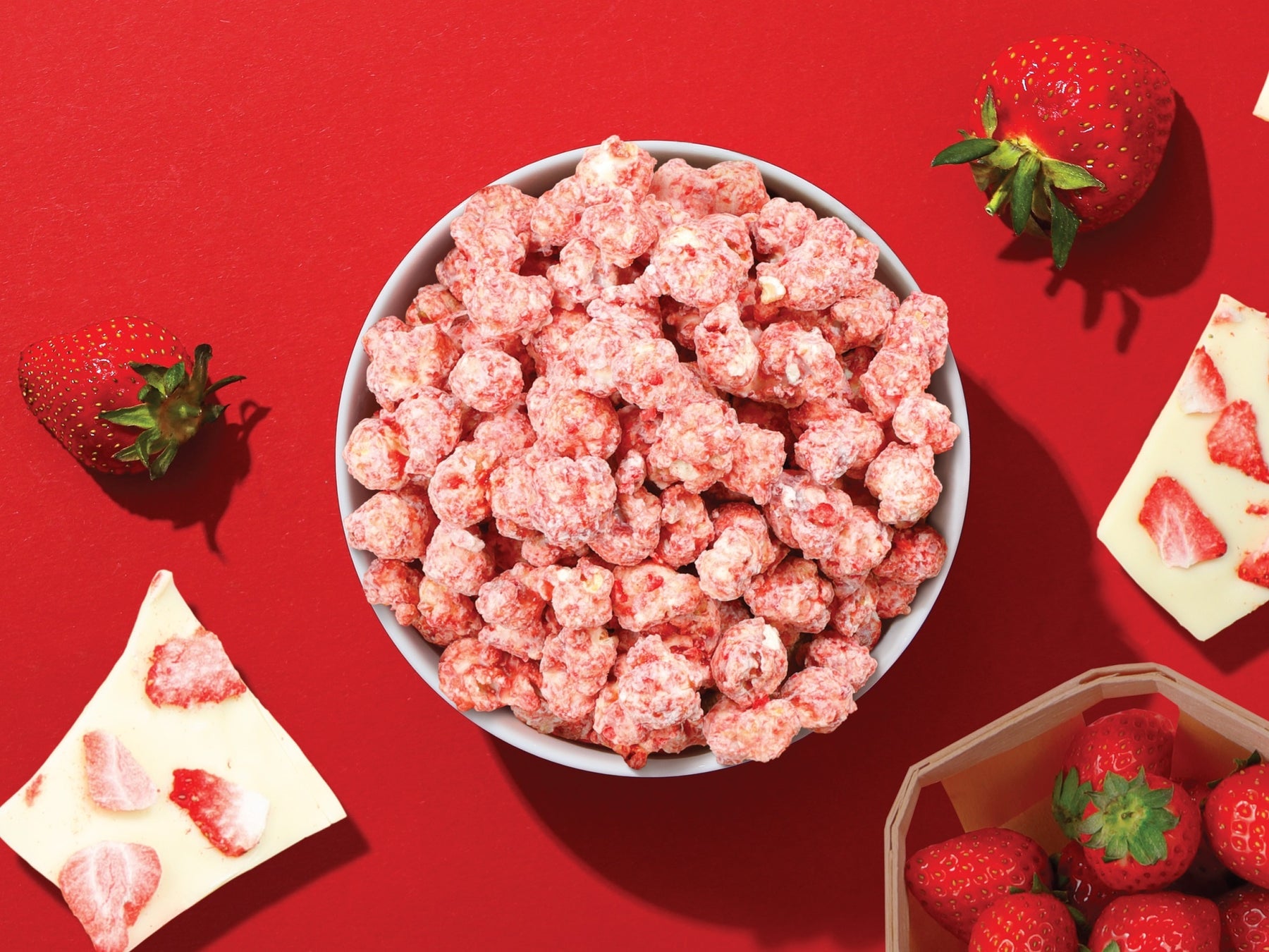 ■ふんわりとした甘さが特徴のストロベリーキャラメルとホワイトチョコレートの組み合わせに、たっぷりのイチゴフレークをまぶした、まさにイチゴづくしの限定レシピが今年も登場!