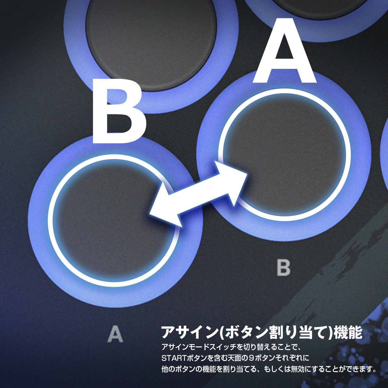 アサインモードスイッチを切り替えることで、LB、LT、STARTボタンのそれぞれに他のボタンの機能を割り当てる、もしくは無効にすることができます。