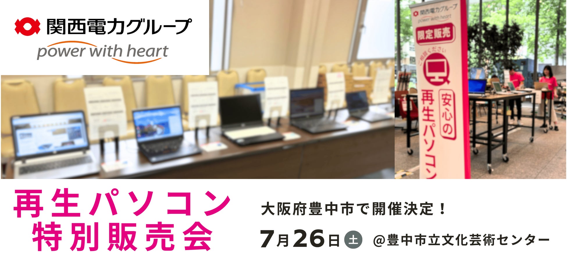 株式会社ポンデテック(関西電力グループ)が運営するPC nextは、2025年7月26日(土)に大阪府豊中市で「再生パソコン特別販売会」を開催します。普段はオンラインストアのみで販売している再生パソコンを、実際に手に取ってお試しいただける機会です。