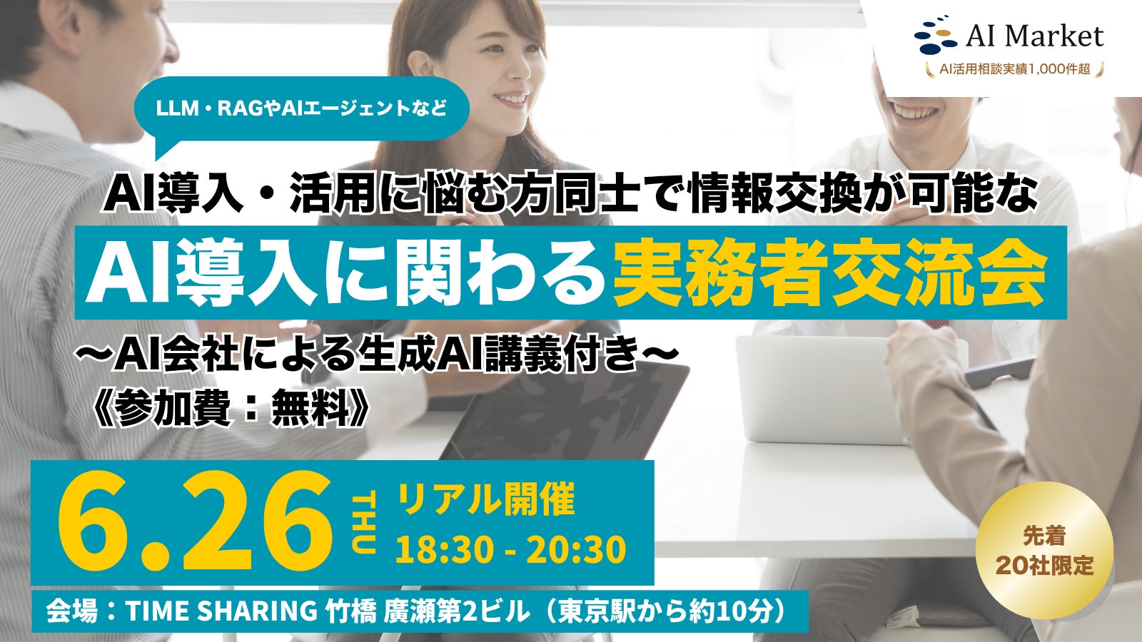 【無料オフライン交流会】AI導入・活用に悩む方同士で情報交換が可能な実務者交流会(2025年6月26日開催)